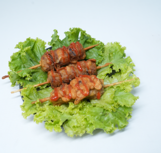 Skewered beef strips grilled with bold spices and tomatos, potatos and onions – a smoky delight.